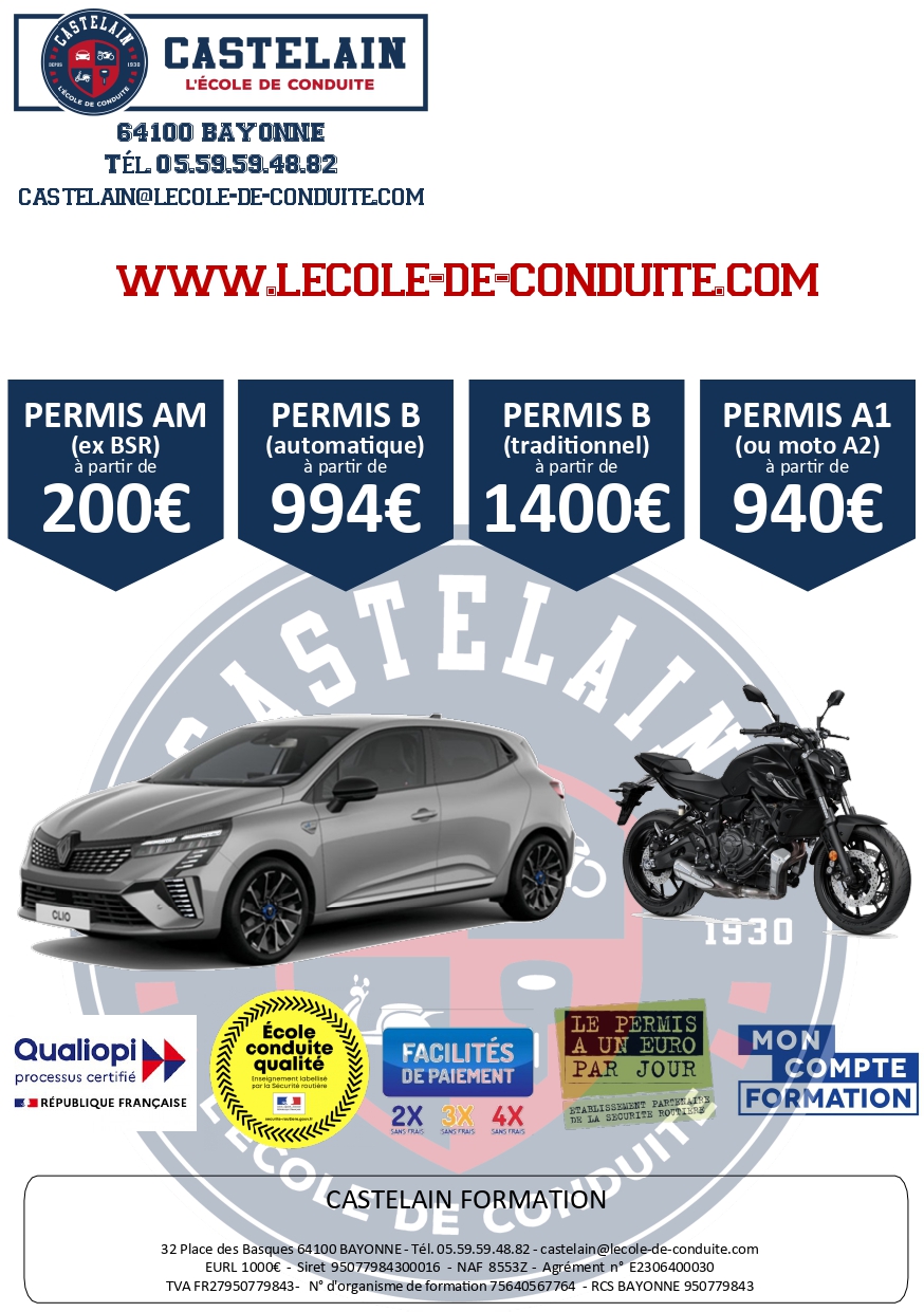 Votre Auto Ecole Castelain s’adapte à vous en vous proposant soit des formules complètes, soit des prestations à l’unités